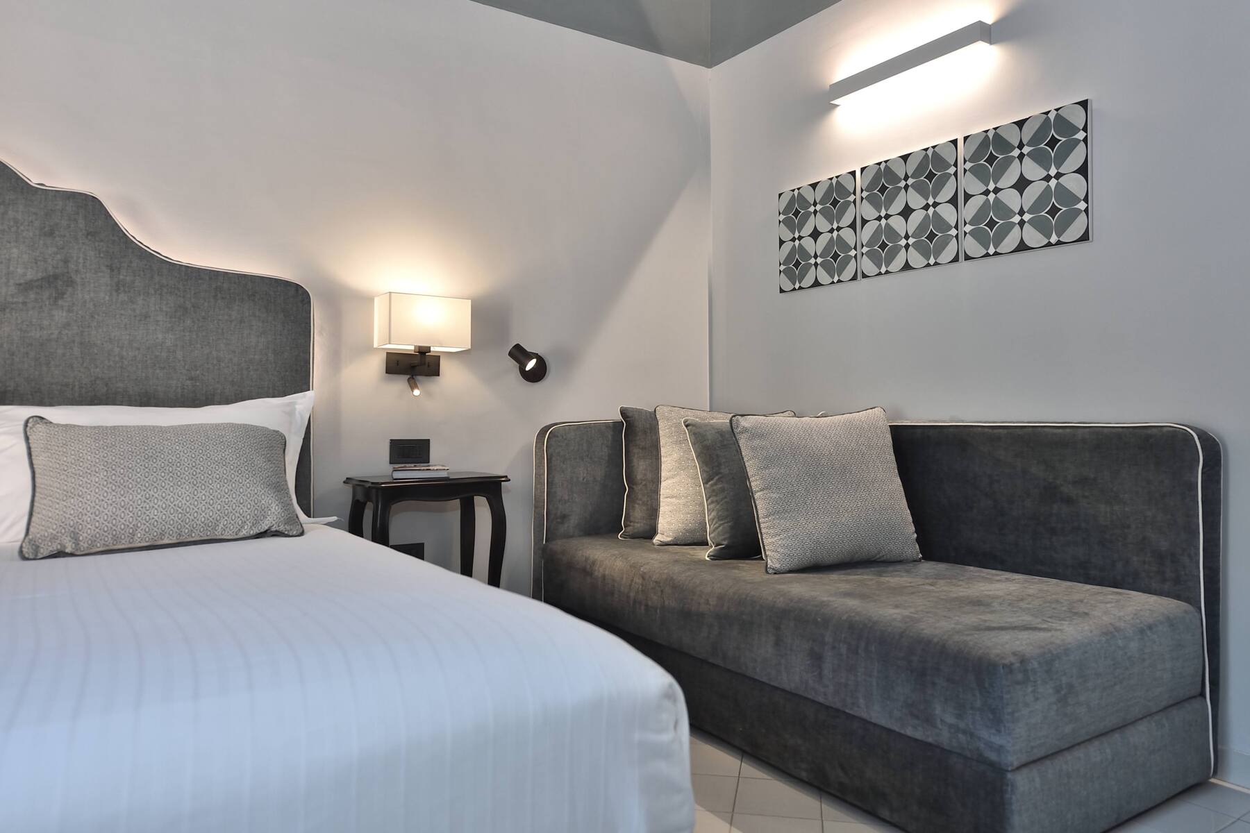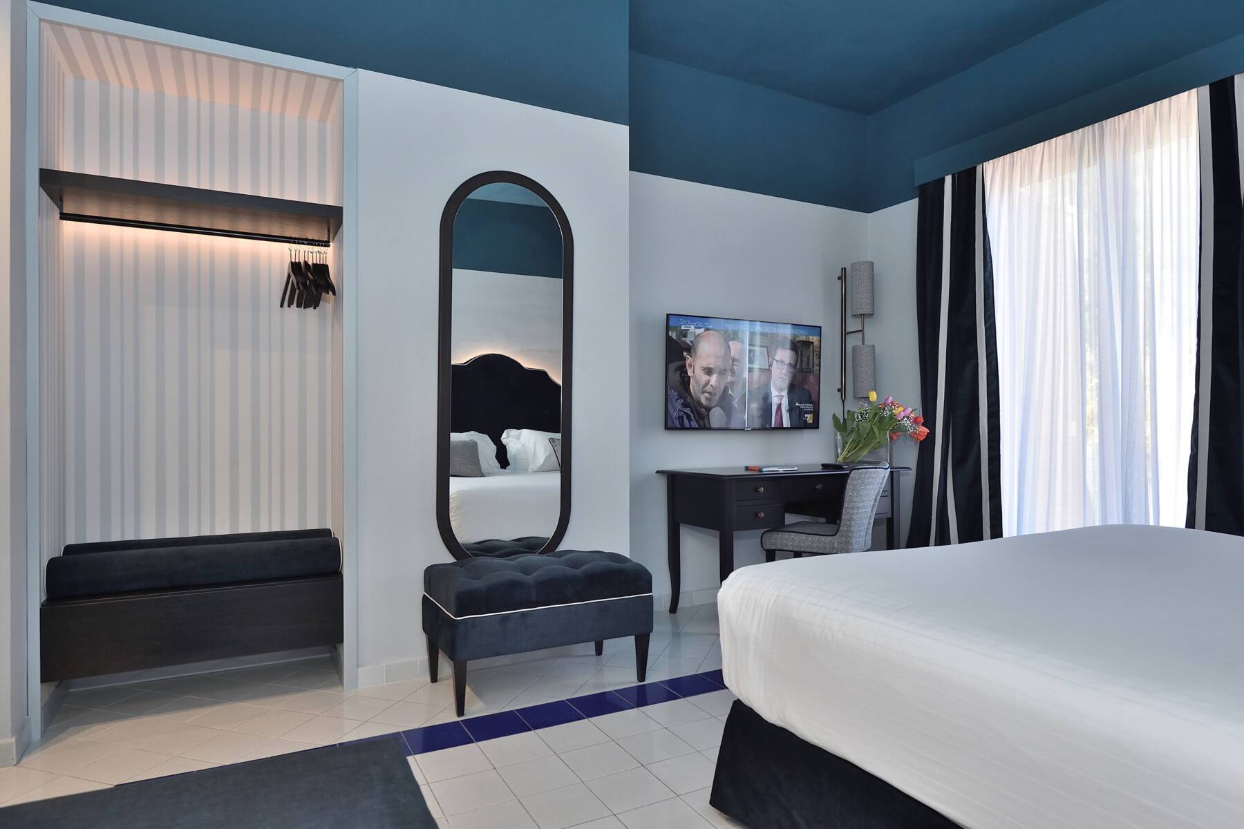 Exklusive Zimmer (nur vier), komplett renoviert, ein raffiniertes und prestigeträchtiges Design, Details mit Liebe zum kleinsten Detail, von der Farbe der Einrichtung über die Umgebungsbeleuchtung bis hin zur überlegenen Qualität der Stoffe, Marmorboden, der das einfallende Sonnenlicht reflektiert und willkommen heißt vom Fenster mit Blick auf die herrliche Terrasse mit Meerblick.